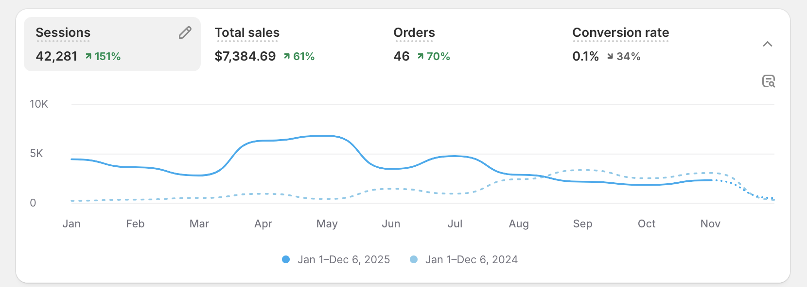 Despite this, total sales still grew by +61%, demonstrating that high-intent visitors continue to respond well to our offering.
