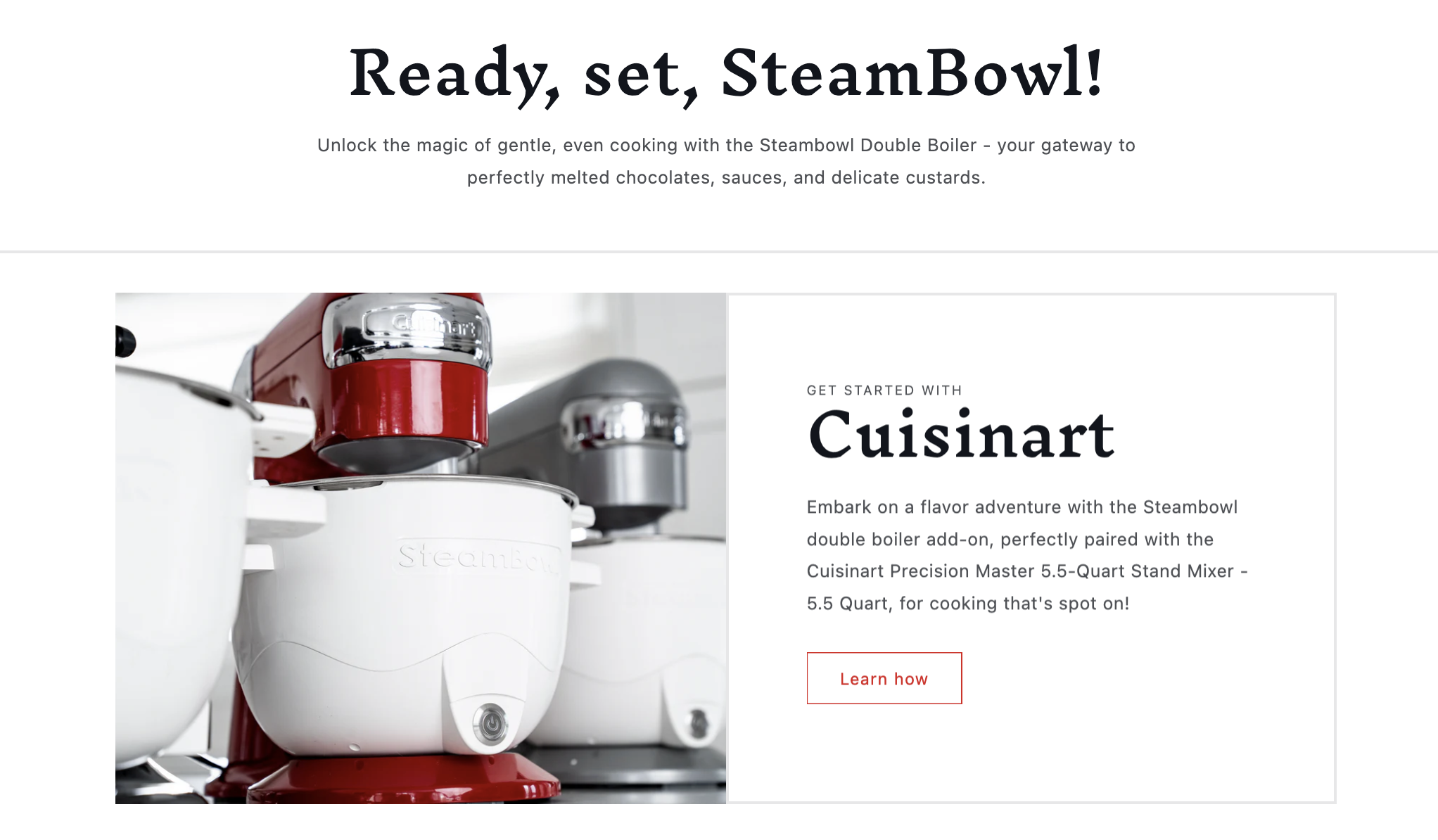 We worked with the SteamBowl team to bring their innovative double boiler to life online. The focus was on showcasing its versatility, ease of use, and sleek design, while positioning it as a must-have kitchen essential for home cooks and professionals alike.
